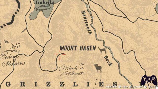 Au nord d'Annesburg, nous pouvons trouver un chalet appelé "Chalet du Cerf" à droite on trouve l'avant-dernière gravure rupestre (emplacement exact ci-dessous).